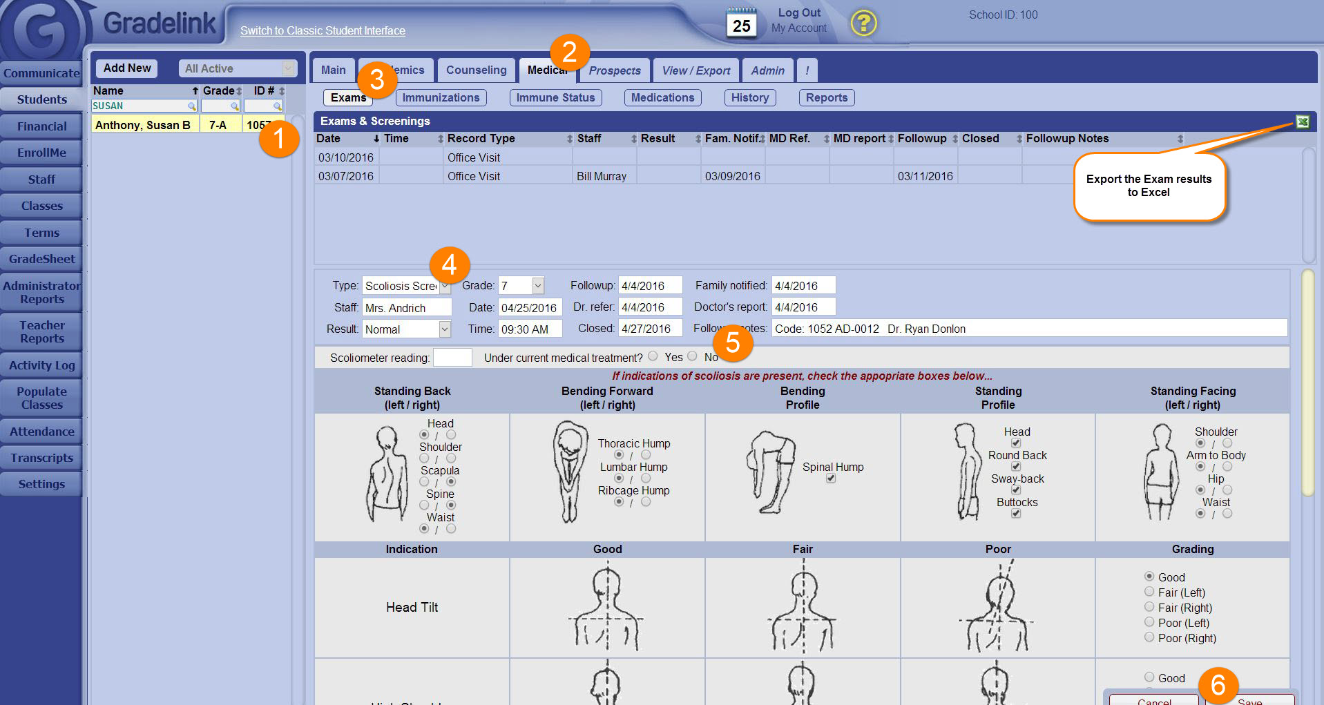 - Haga clic en la sub pestaña médica en la parte superior de la pantalla.