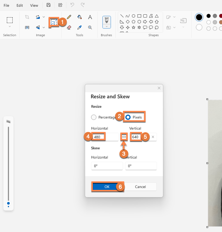 - Click the Maintain aspect ratio button that appears between the Horizontal and Vertical numbers