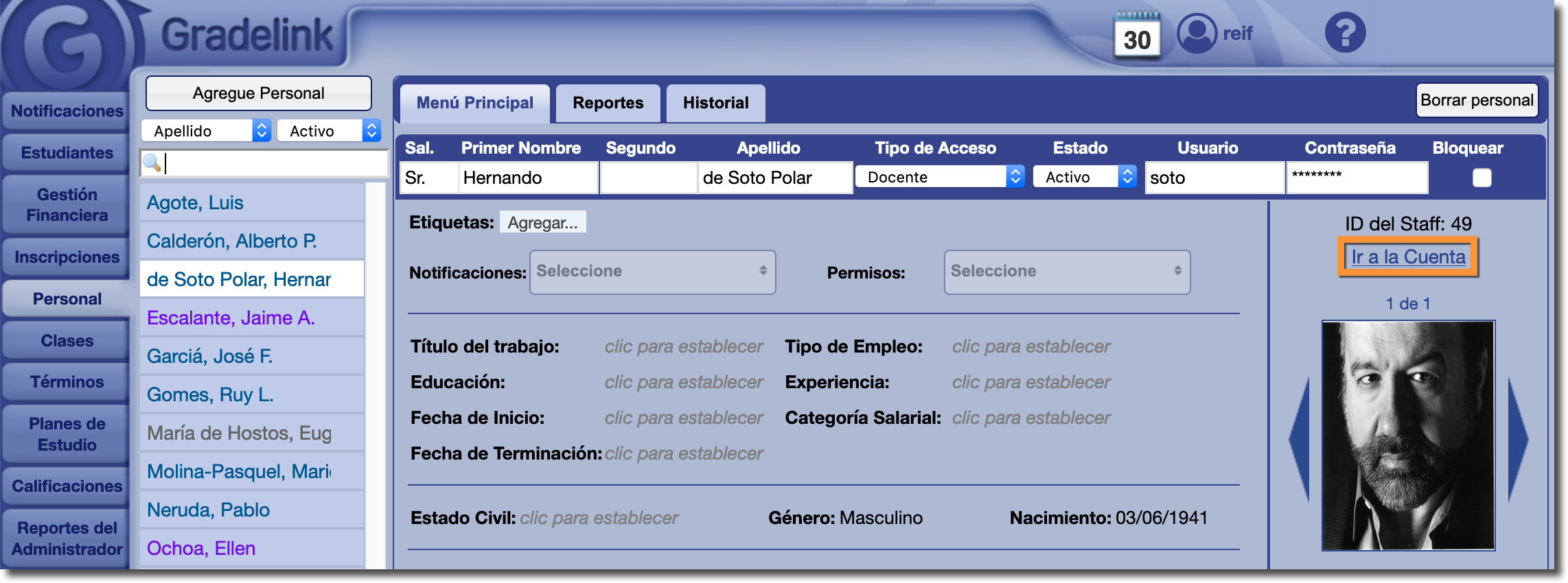 Administrador y de como iniciar una sesión como docente