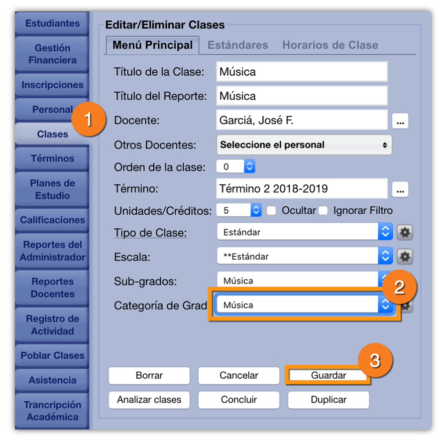 1. Haga clic en la pestaña Clases y luego seleccione una clase actual o agregue una nueva clase.