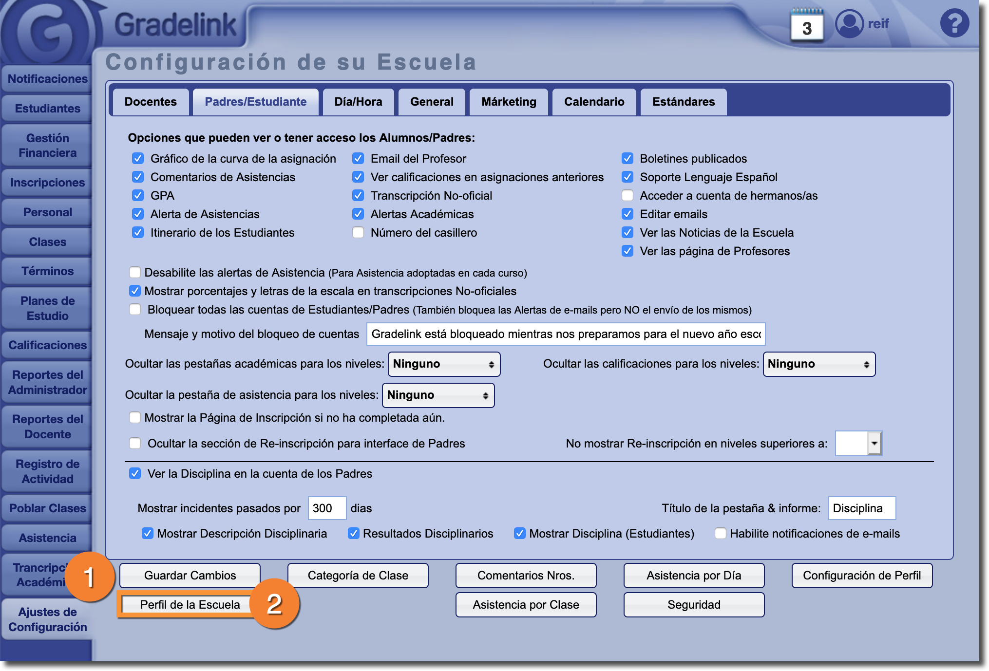 Para actualizar esta información, deberá actualizar el Perfil de la Escuela en la pestaña Ajustes de Configuración.