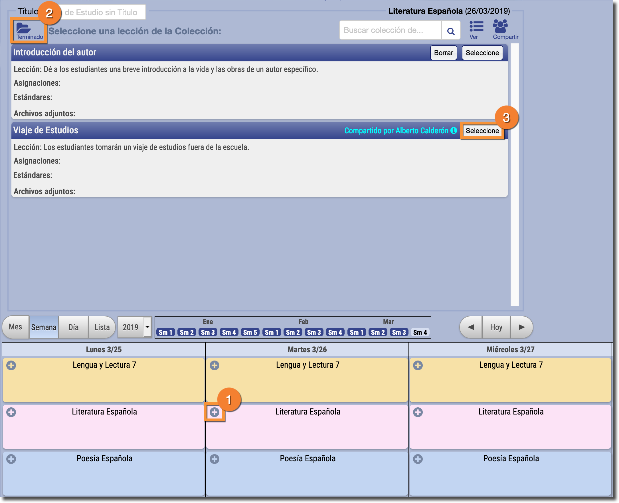 La siguiente descripción asume que ya tiene guardadas las plantillas de planes de estudio en su Colección. Si desea más información sobre cómo crear plantillas, haga clic aquí.