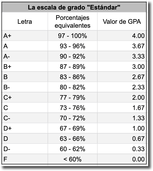 En Gradelink, el GPA se calcula mediante el siguiente método: