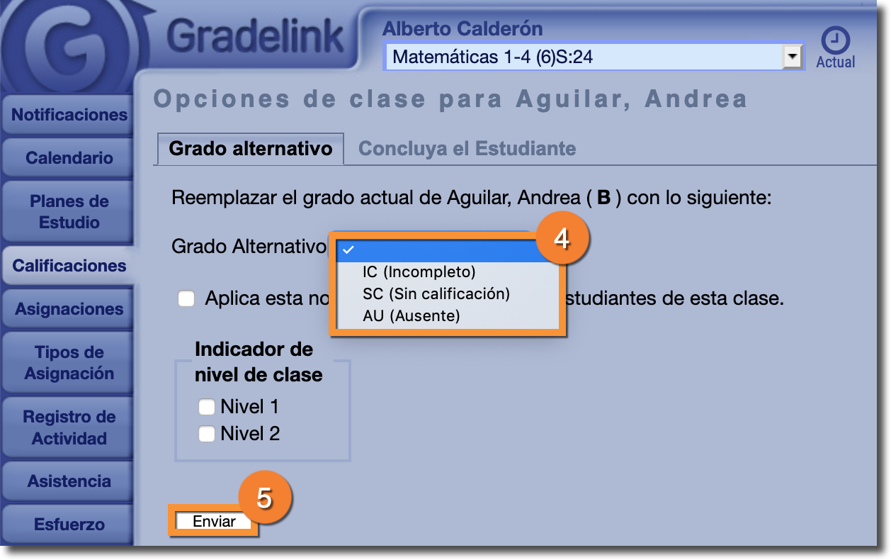 ¿Cómo le doy una calificación alternativa a un estudiante?