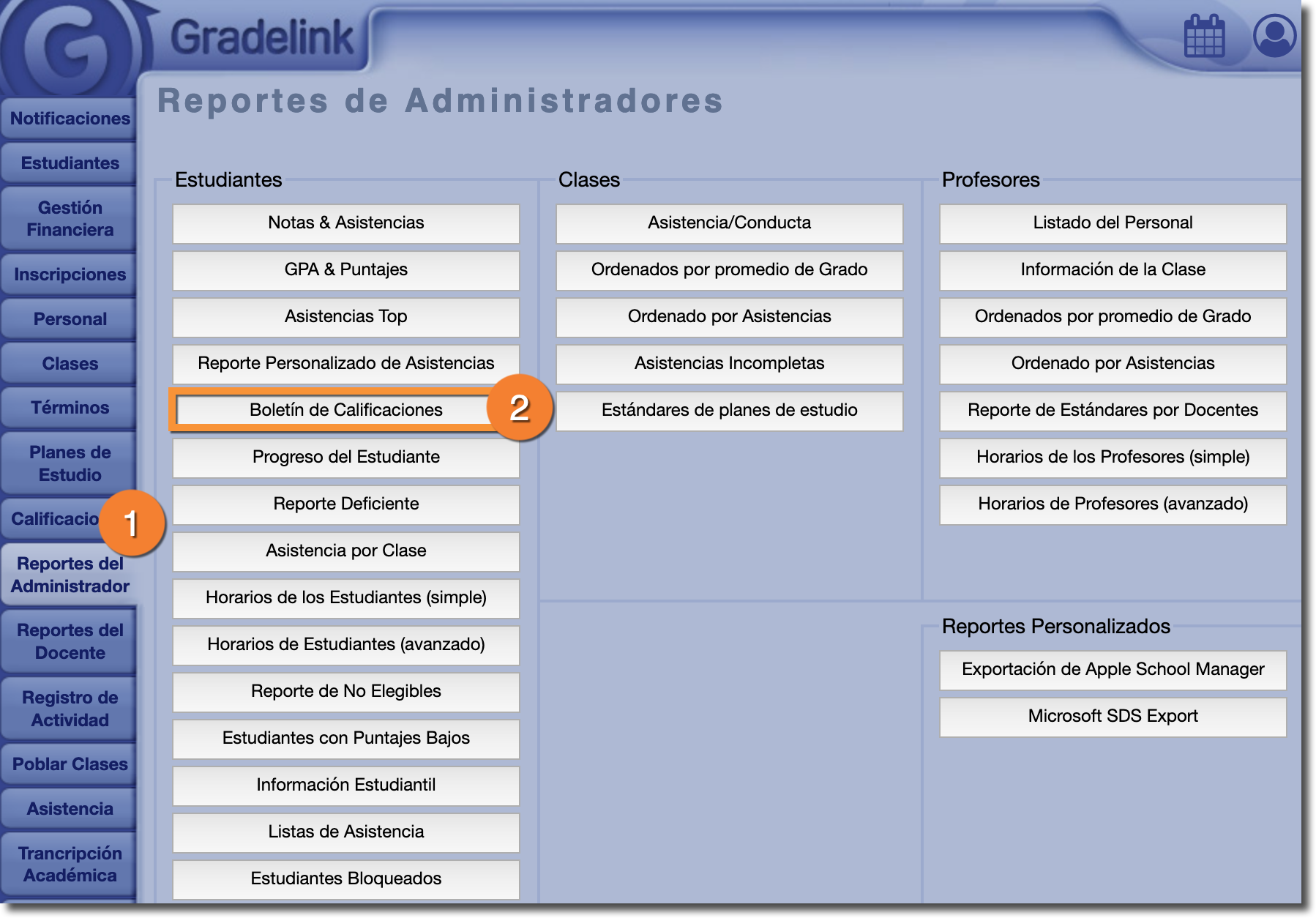 - Haga clic en el botón correspondiente de Boletín de Calificaciones