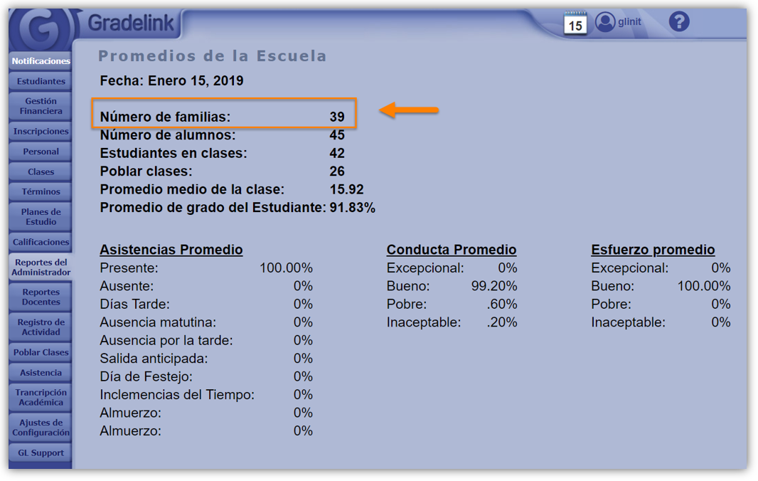 ¿Cómo obtengo un total de la cantidad de familias que tenemos?