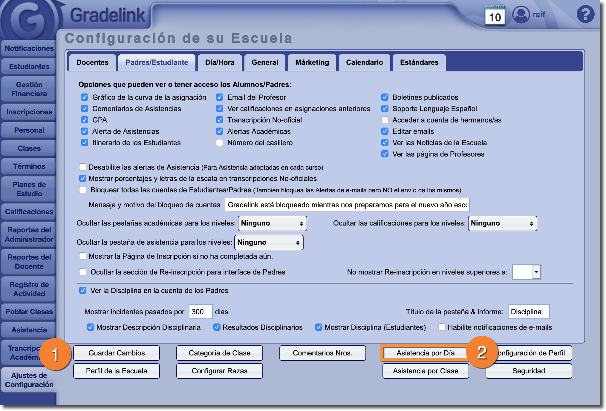 - En la columna Valor de Ausente, agregue el valor apropiado. Por ejemplo, si 5 tardanzas = 1 ausencia, cambie a 0.20.