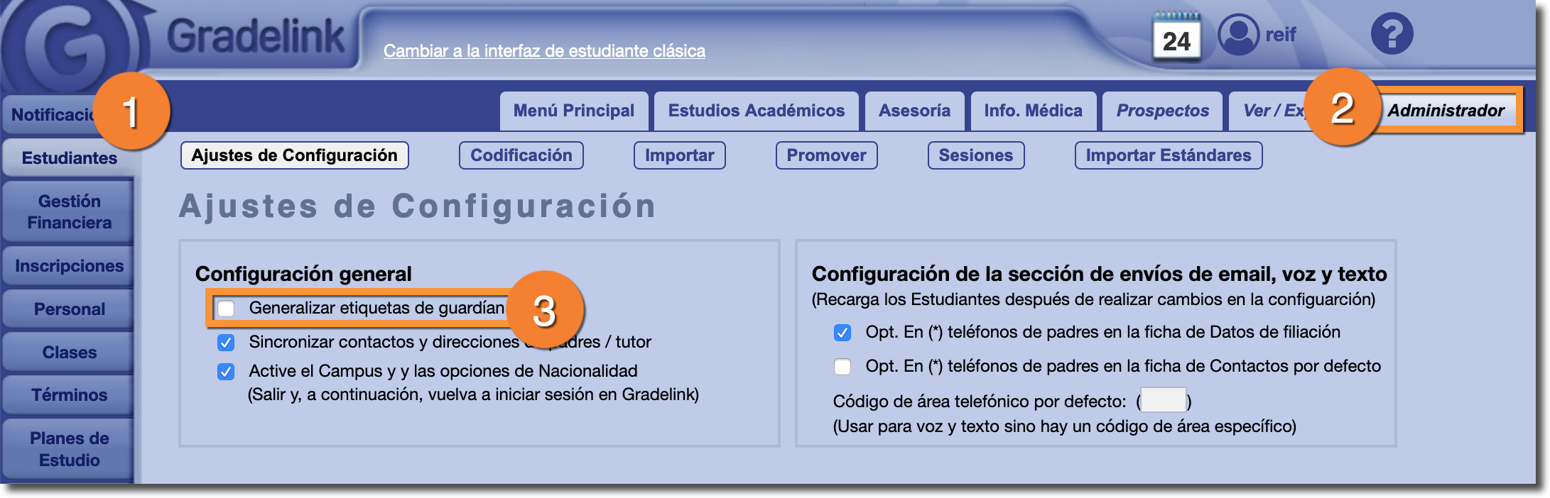 - En la sección Ajustes de Configuración, marque la casilla etiquetada como Generalizar etiquetas de guardían