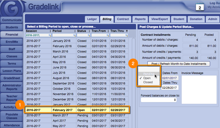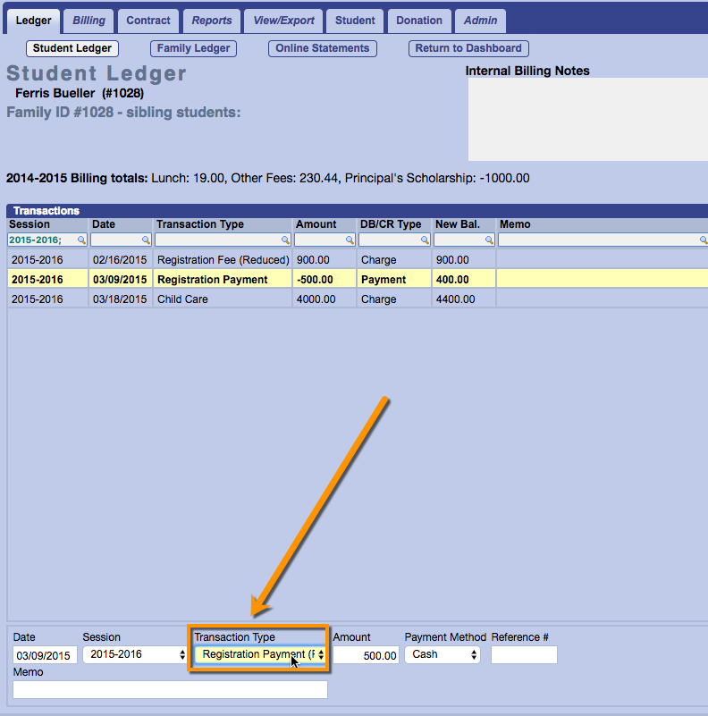 If a transaction for a prior session was entered incorrectly, you will need to go back and change it. If Gradelink prevents you from doing so because of a balance transfer, here are a few steps necessary to make the change.
