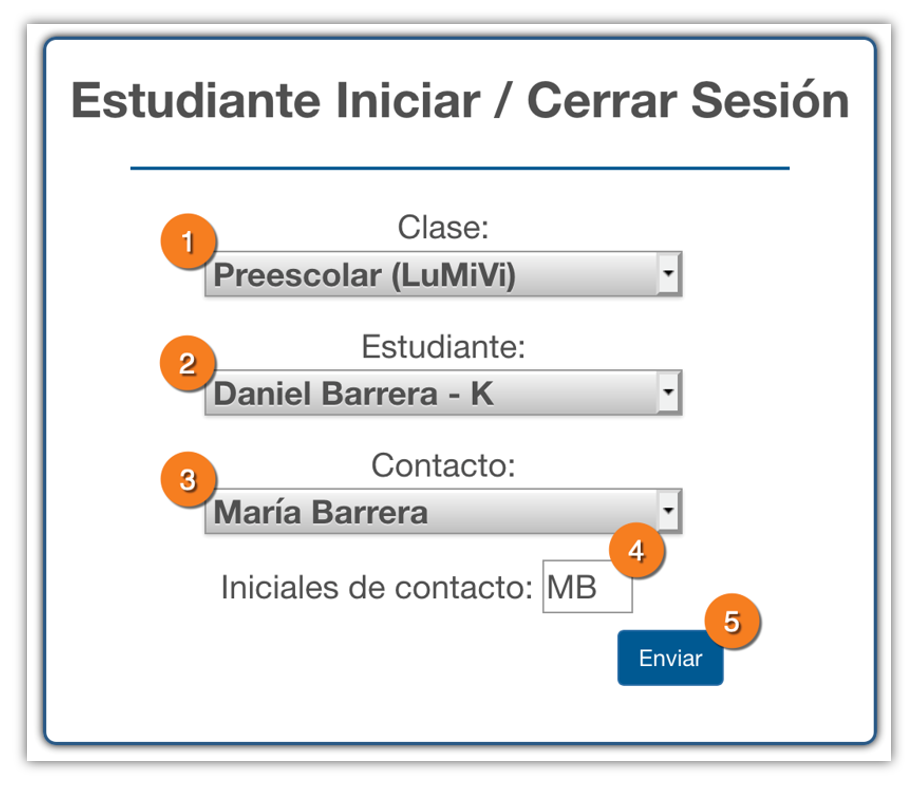 Por seguridad, solo las personas autorizadas a recoger un estudiantes pueden firmar o cerrar una sesión.