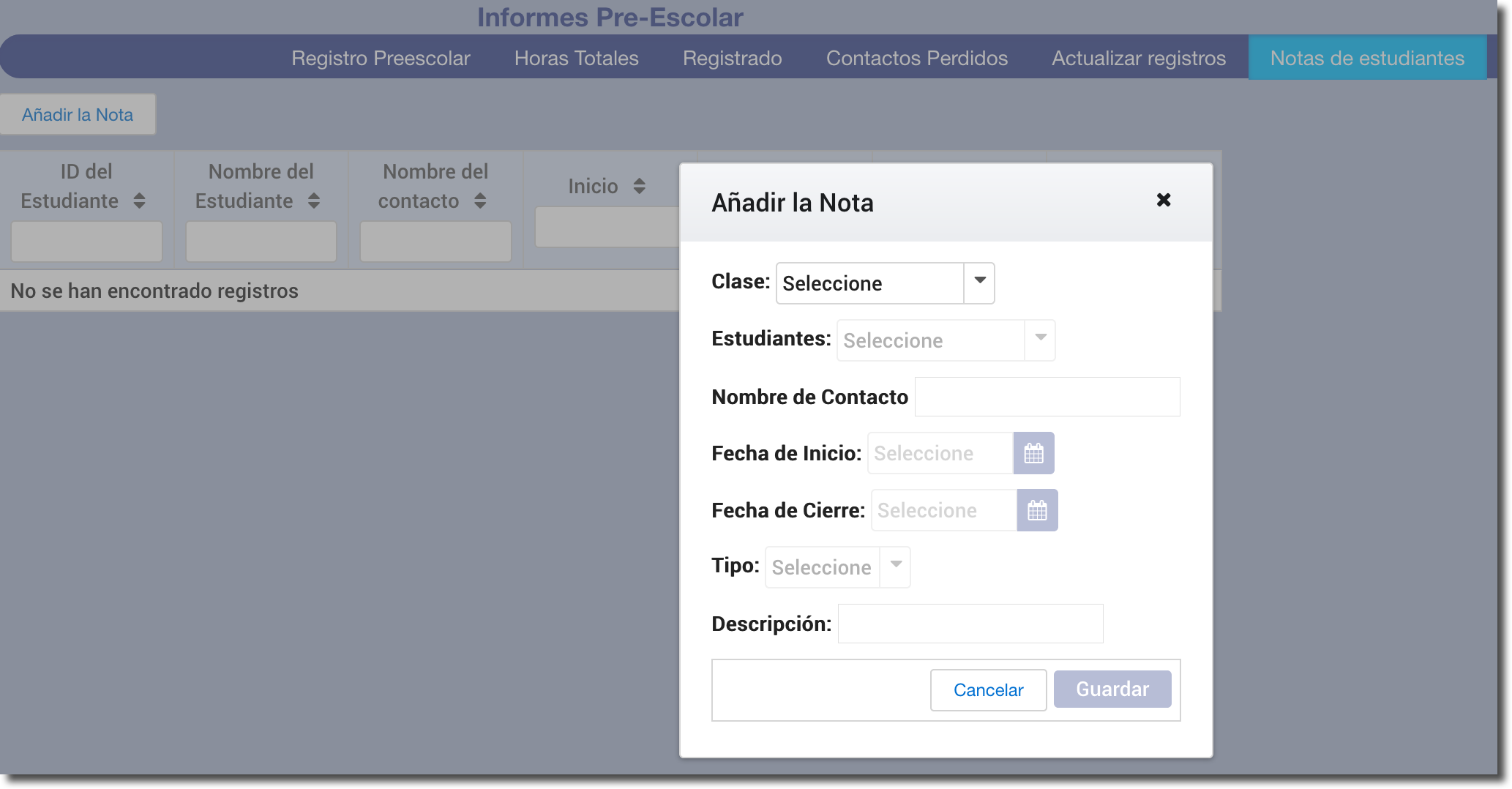 Registro preescolar