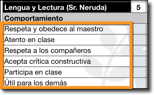 - Las Clases personalizadas solo poseen Sub-Grados, y el primer Sub-Grado se usa para la "calificación general".