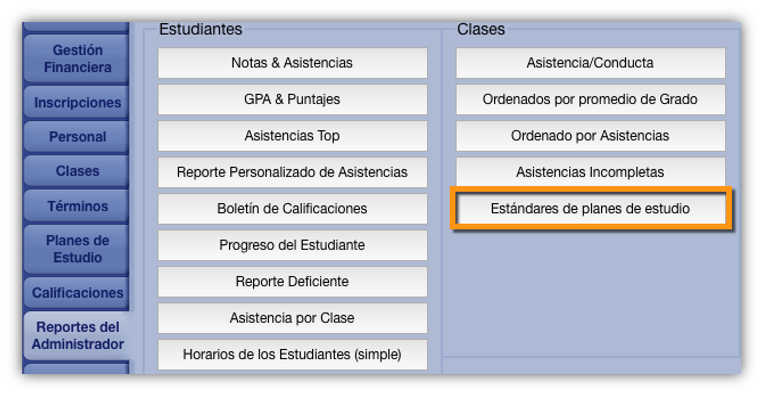 Este informe muestra la cantidad / porcentaje de estándares en una clase que se han agregado a un plan de lección. También enumera los estándares que no se han incluido en un plan de lección.