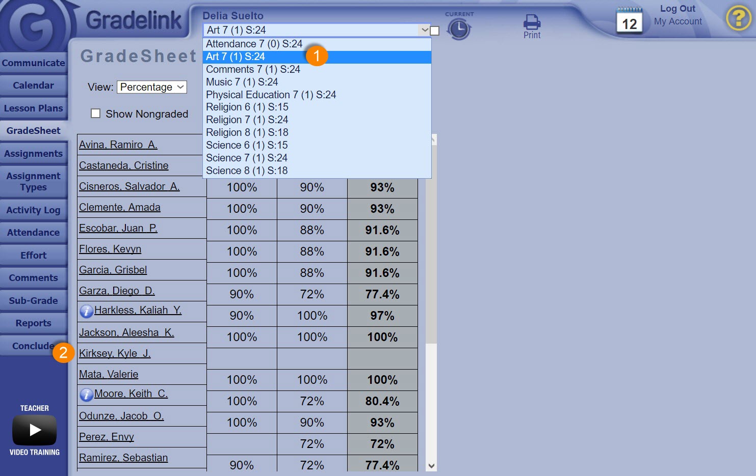 As a Teacher, select the Class you’d like to conclude from the Classes drop-down menu at the top of the page.