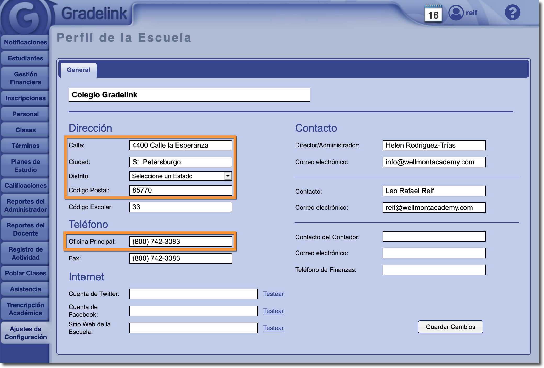 Solo algunos de los campos en el perfil de la escuela aparecerán en el boletín de calificaciones: