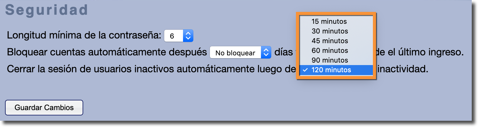 Cerrar la sesión de usuarios inactivos... le dice a Gradelink que cierre la sesión automáticamente a los usuarios que han estado inactivos durante un cierto período de tiempo.