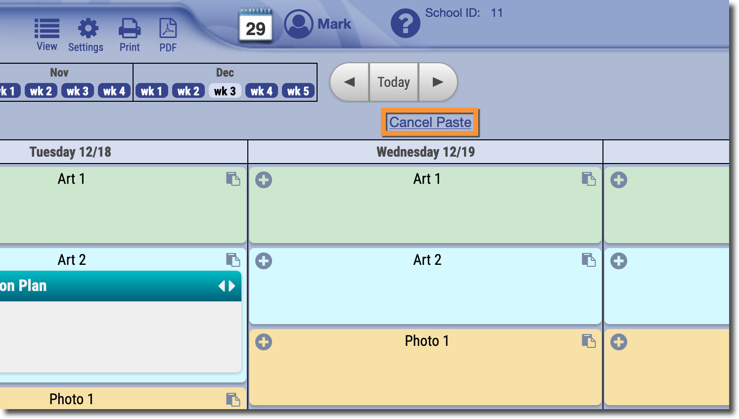 When you're done pasting the lesson plan, click "Cancel Paste" at the top center of the page.