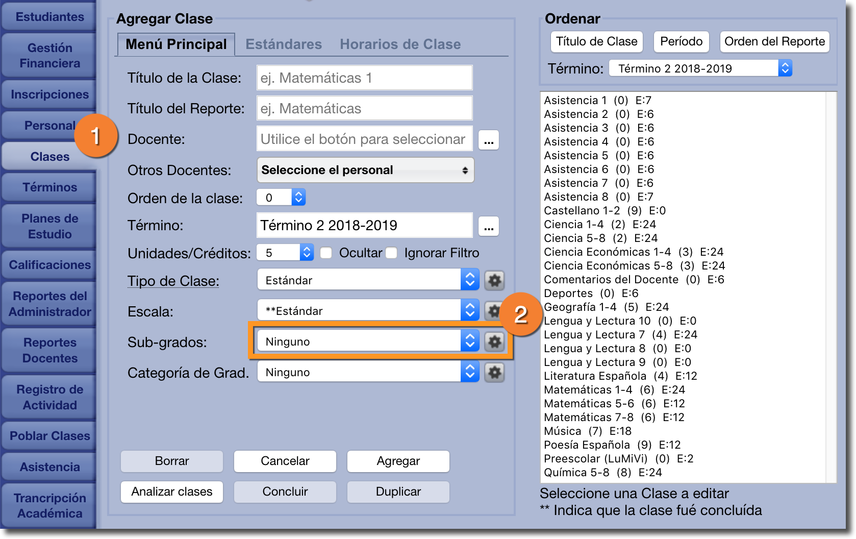 Tanto las Clases 'Estándar' como las Clases Personalizadas pueden poseer Sub-Grados. Se requiere que las Clases personalizadas posean Sub-Grados para recibir cualquier tipo de calificación, mientras que los Sub-Grados solo sirven como un suplemento extra a las Clases Estándar, porque pueden o no incluírlos.