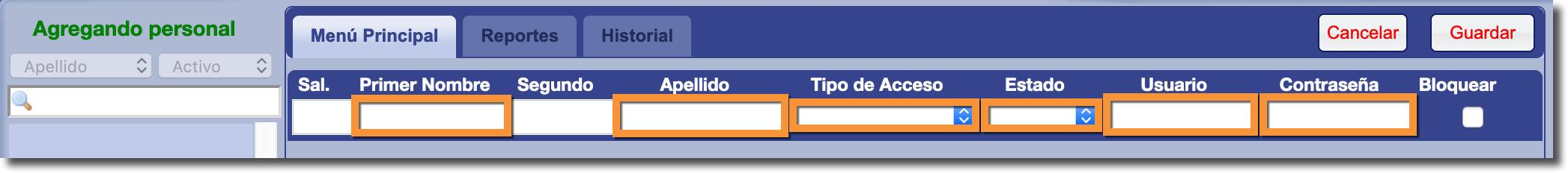 3. Tipo de Acceso: determina qué tipo de cuenta se creará. Hay cuatro tipos: Administrador Ilimitado, Administrador Limitado, Docente y Sin Acceso.