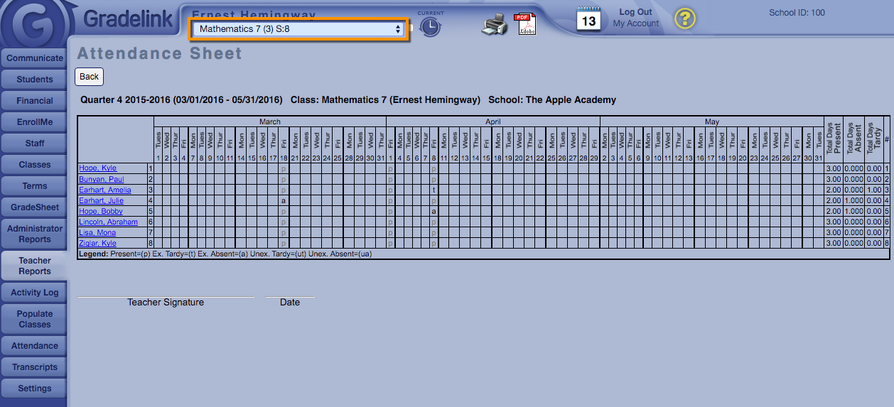 Create a Daily Attendance Sheet Create a Daily Attendance Sheet Click on Teacher reports. Click the Attendance Sheet. Set the appropriate settings. Teacherreports