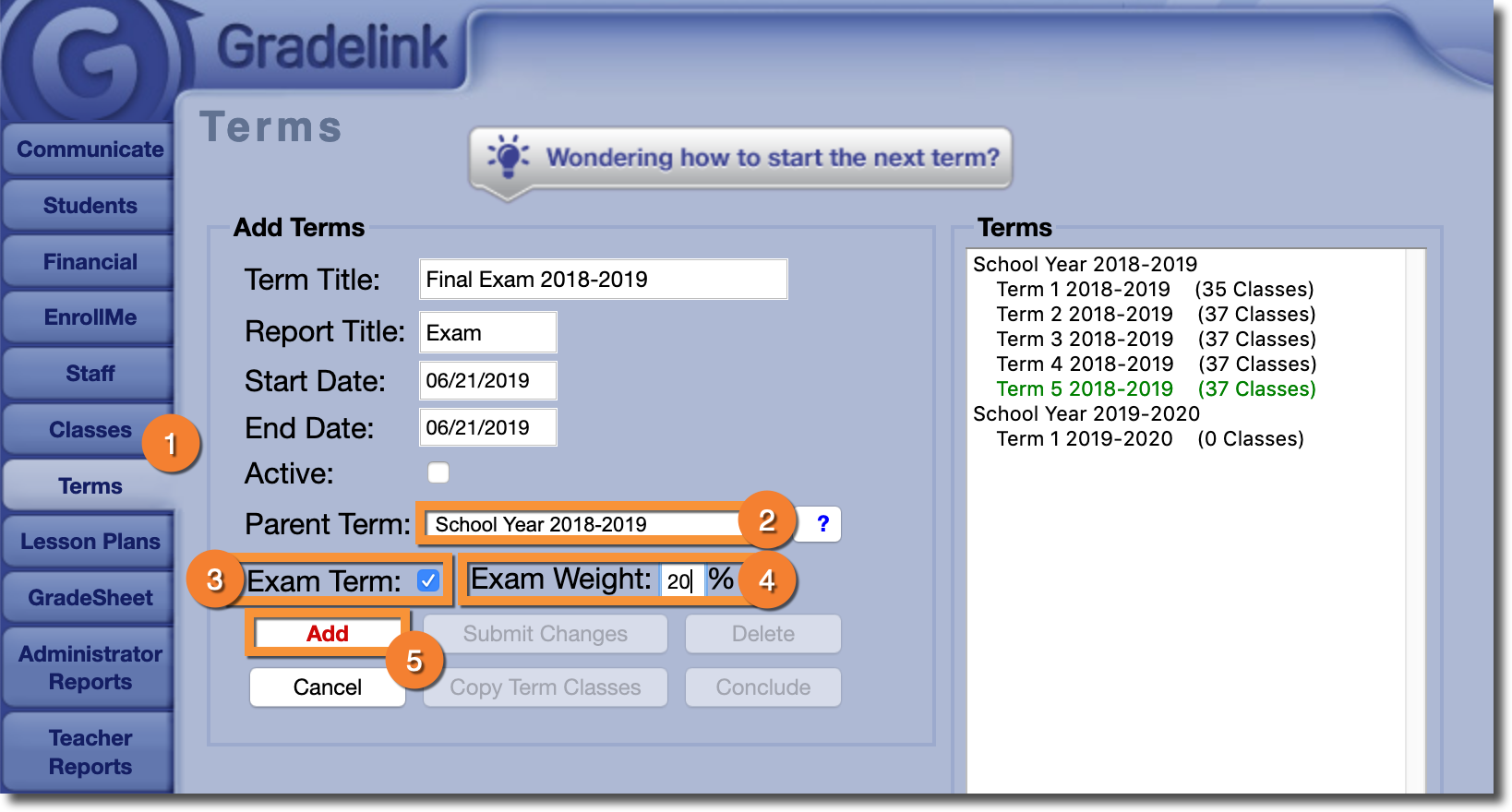 To finish setting up your Exam Term, you'll need to either copy classes from an existing term or create new classes. For more information, please click here.