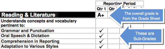 • Custom Classes only possess Sub-Grades, and the first Sub-Grade is used for the "overall grade".