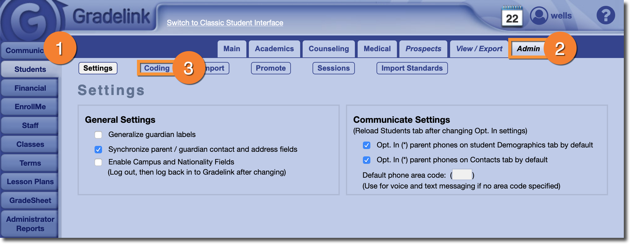 Note: Some of the coding lists may be blank when you select them. However, this does not mean the list is empty. If a coding menu appears blank, that means that Gradelink is using default values. As soon as you start adding new values, they will appear normally.