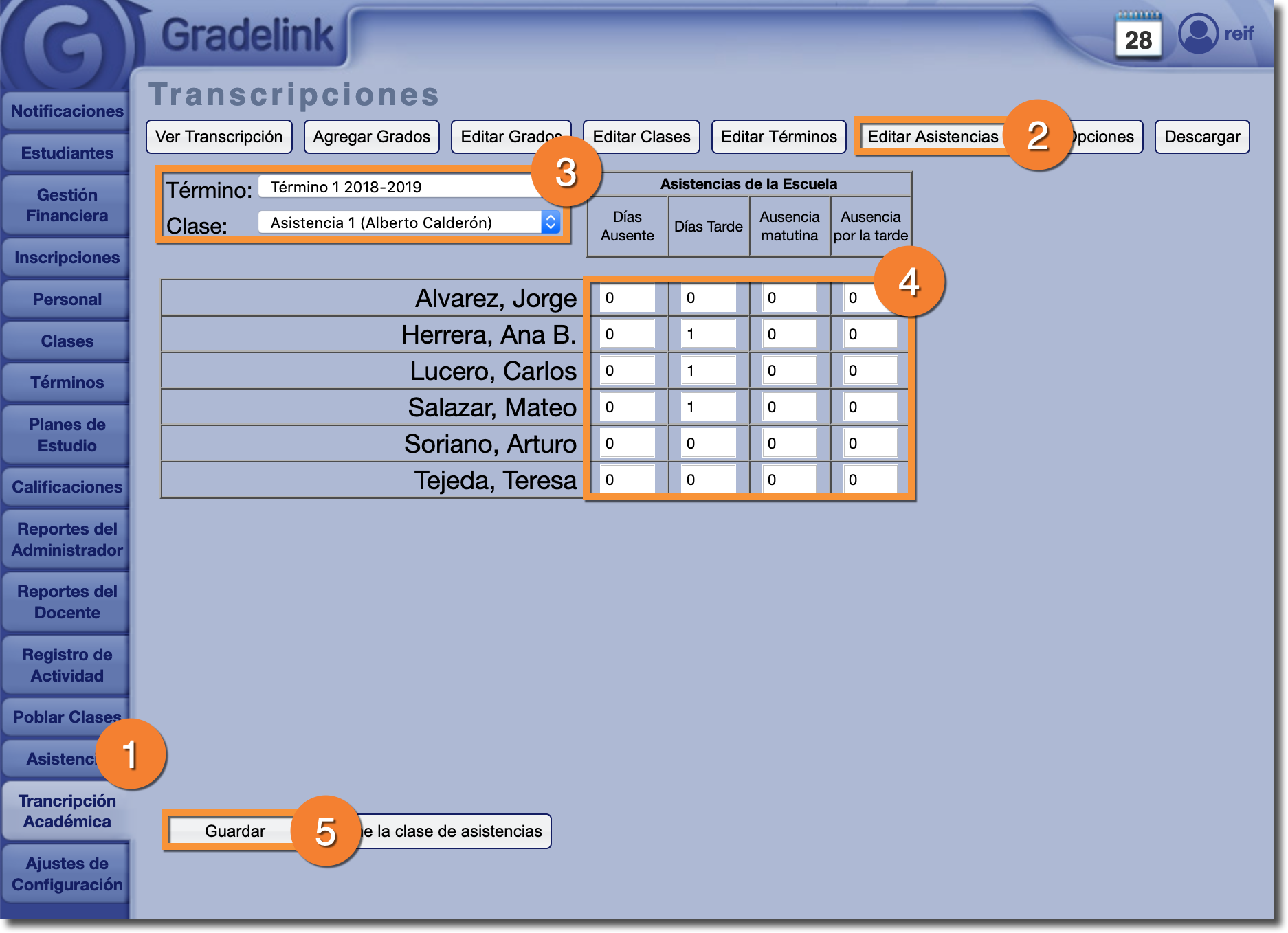 Los administradores tienen la capacidad de ajustar los totales de asistencia que aparecen en los boletines de calificaciones y las etiquetas de transcripción.