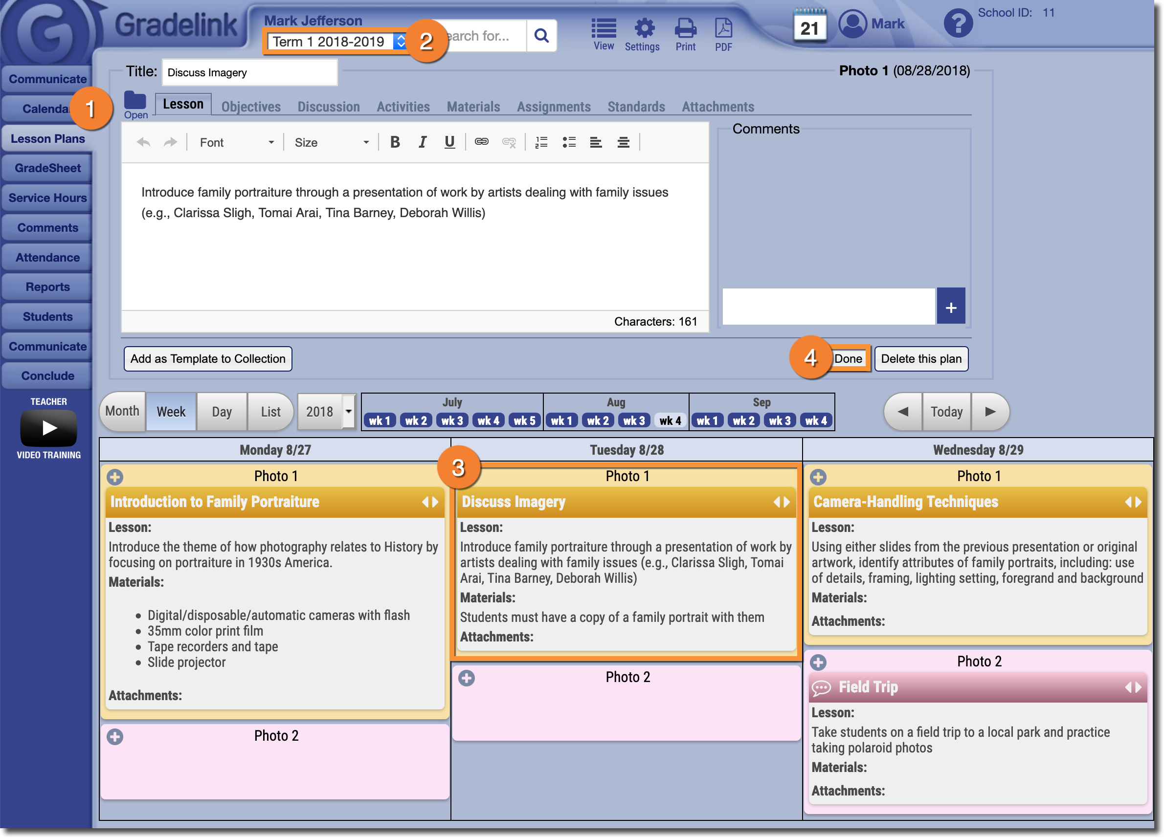 - Select the Lesson Plan you would like to edit. The Lesson Plan interface will appear at the top of the page, allowing you to make edits.