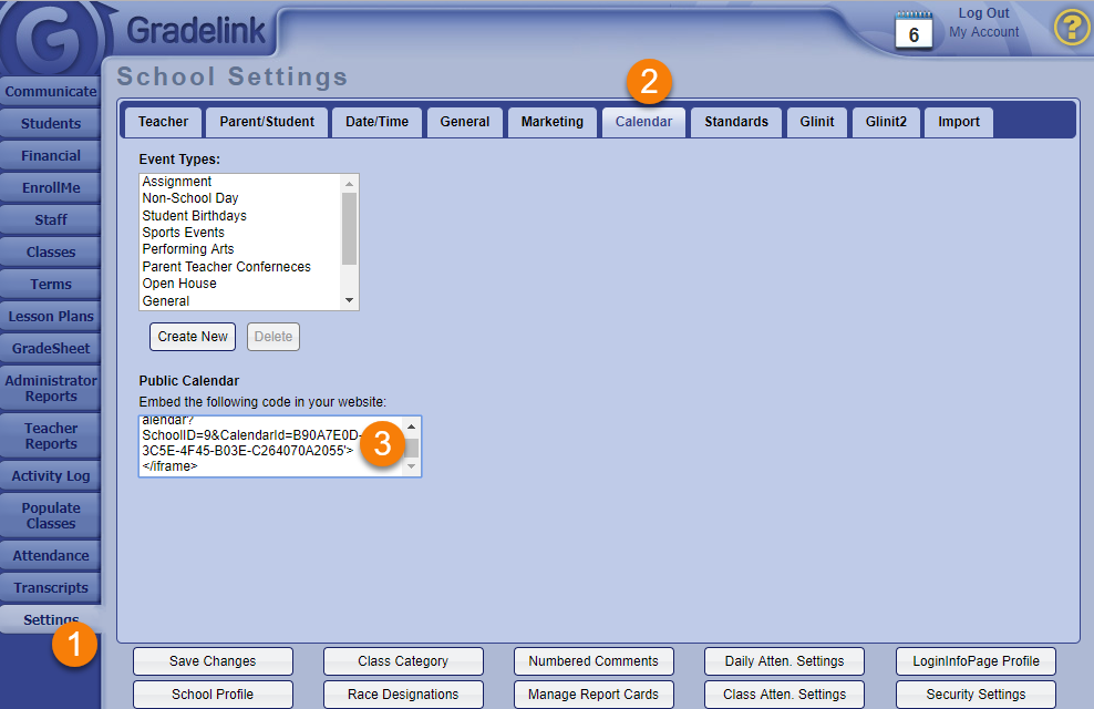2. I want parents to see our calendar when they log in to Gradelink. How should I do it?
