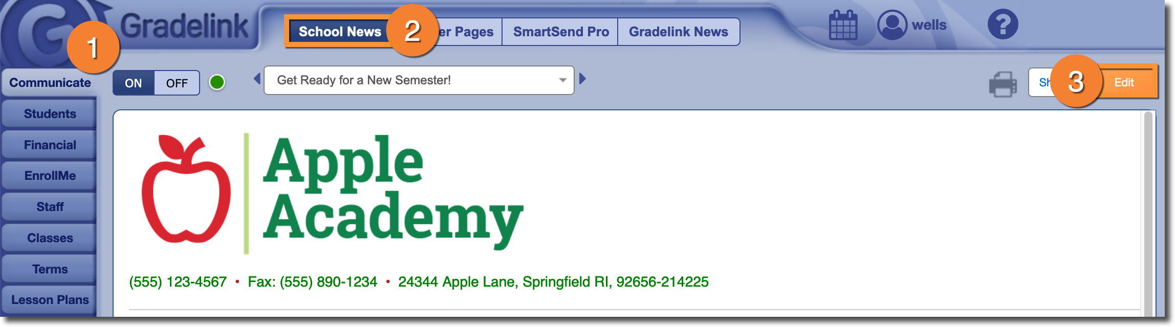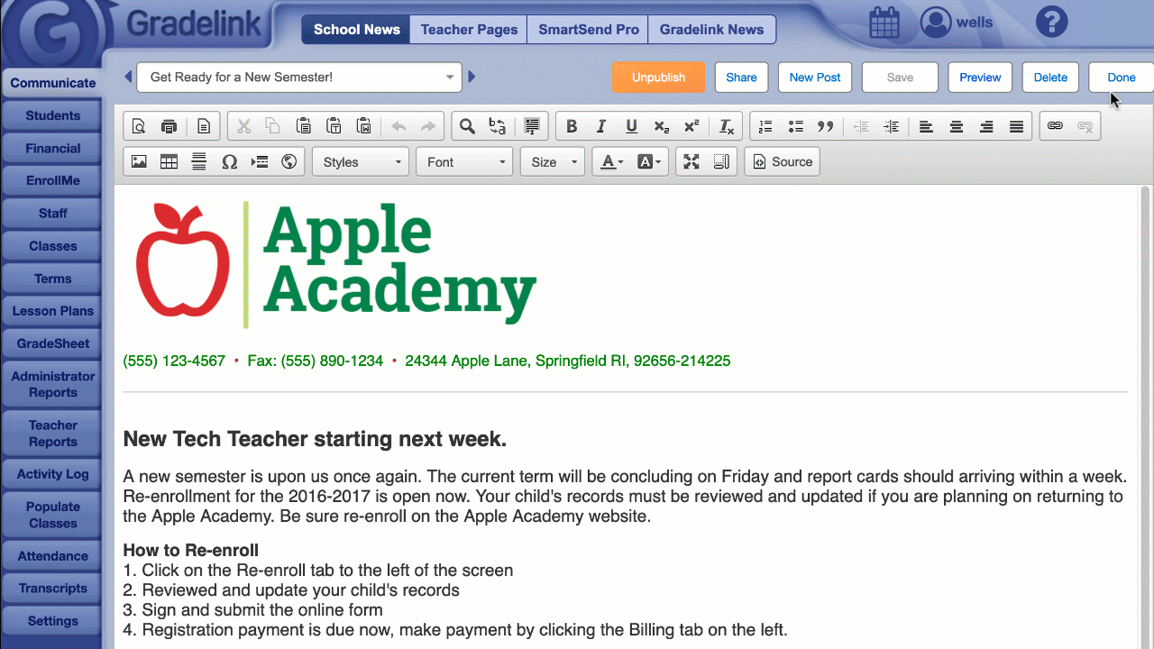 Once you've copied to embed code, all you need to do is insert it into the appropriate page. In this example, we'll be embedding the Public Calendar into a School News page.