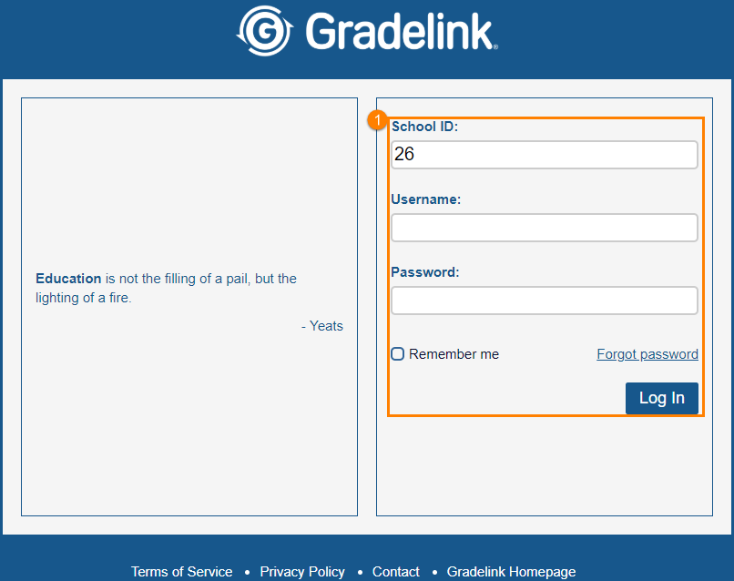 1. Parents will log-in to their Parent Portal using their Gradelink login username and password.