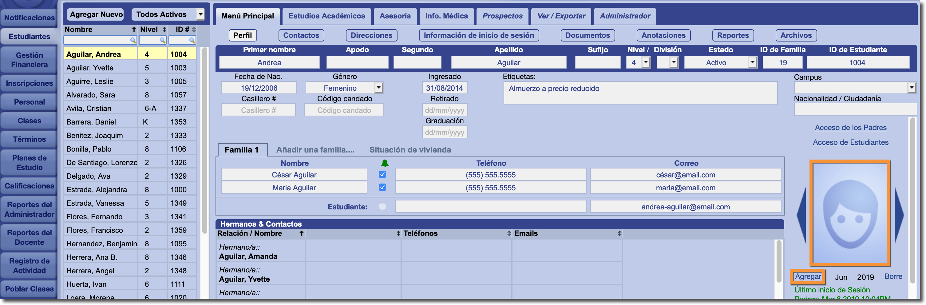 2. ¿Cómo cambio la foto que aparece en el perfil del estudiante?