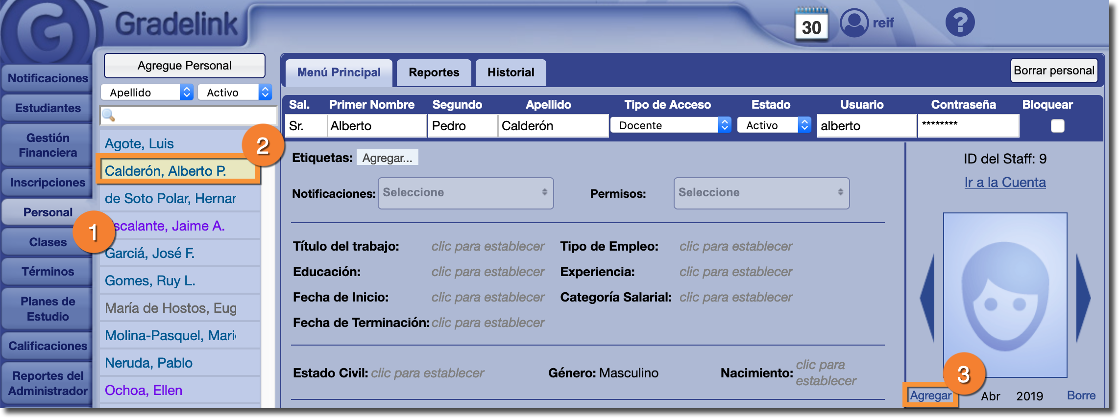 Para agregar una foto del personal y de los profesores: