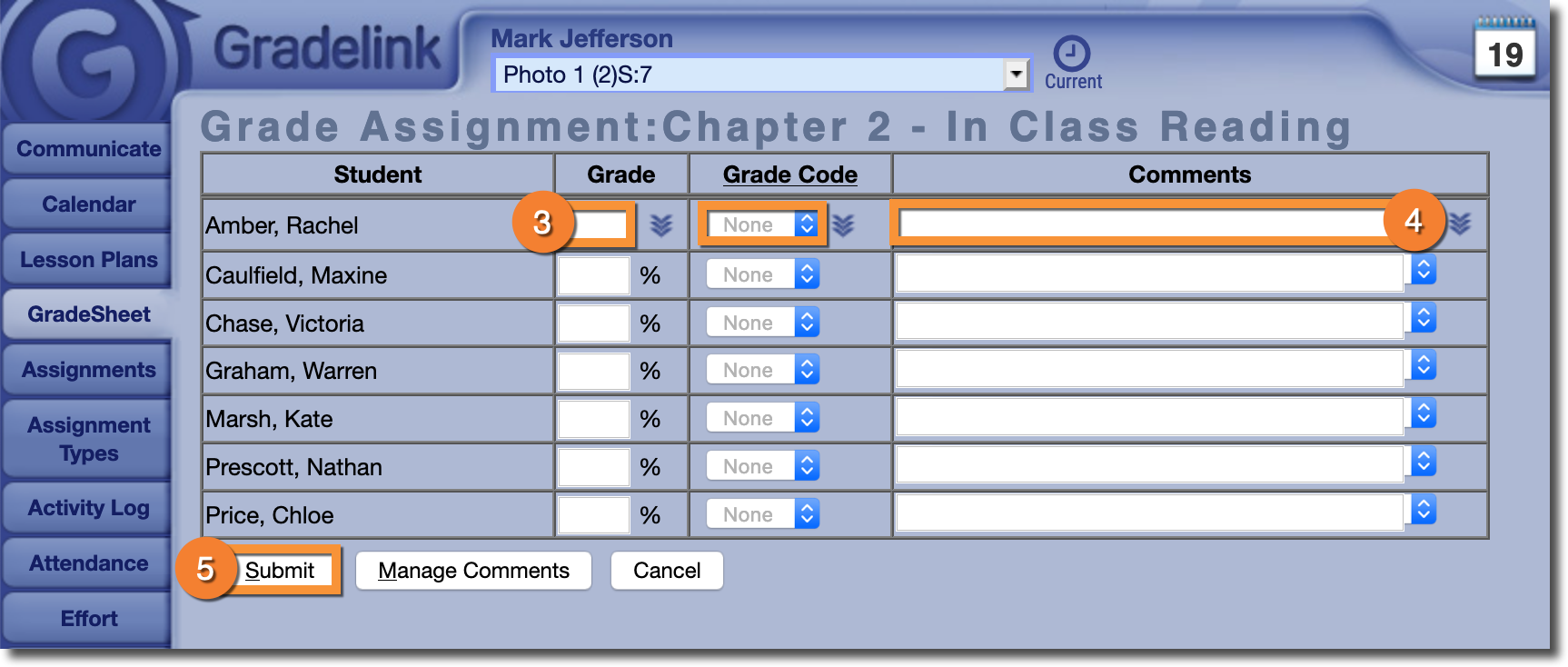 4. Optionally, you can add comments to each student's grade.