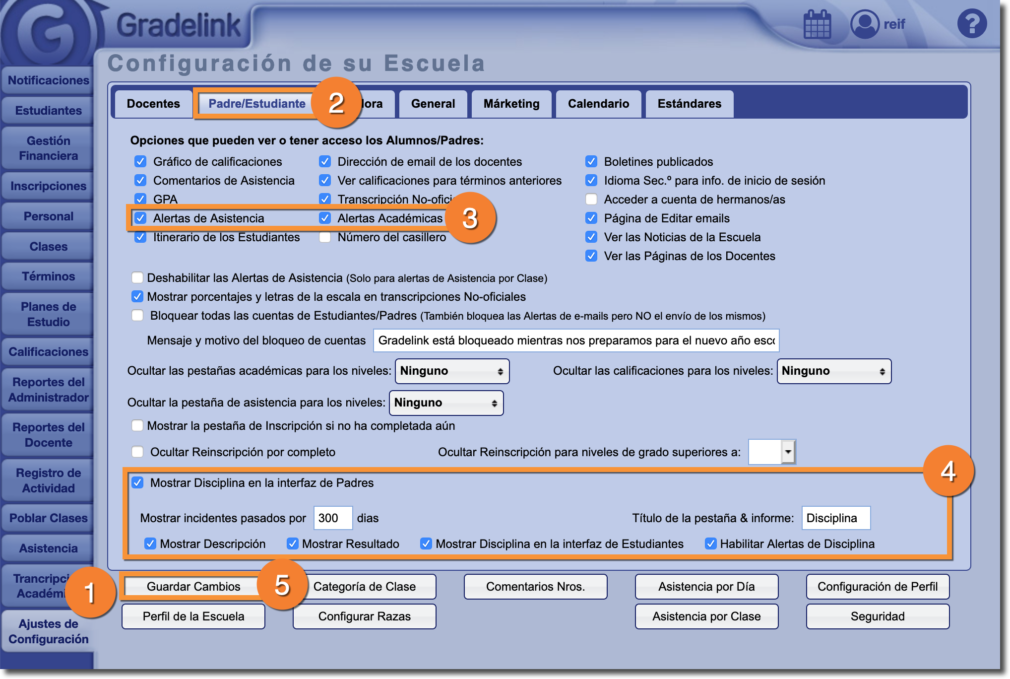 - Marque la casilla etiquetada Mostrar Disciplina en la Interfaz de Padres