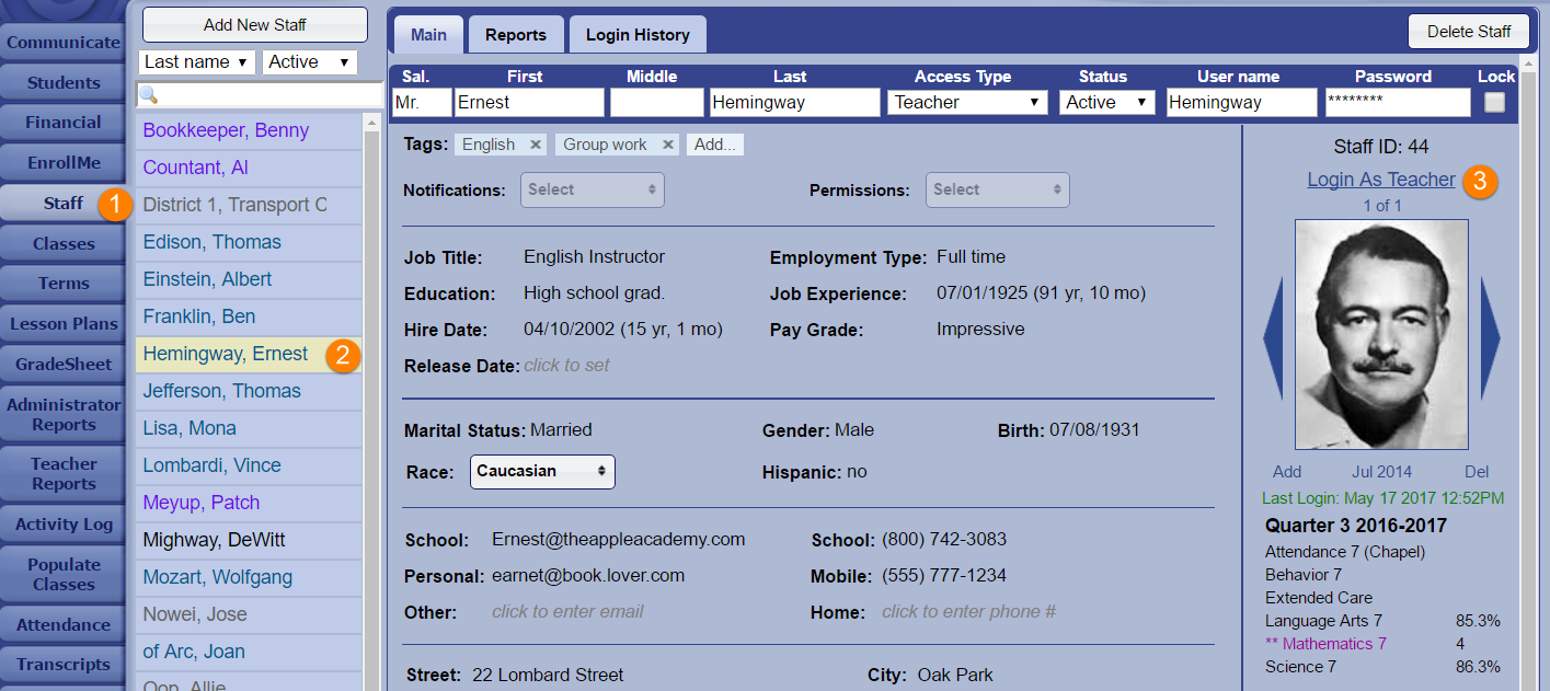 1. Click on the Staff tab.