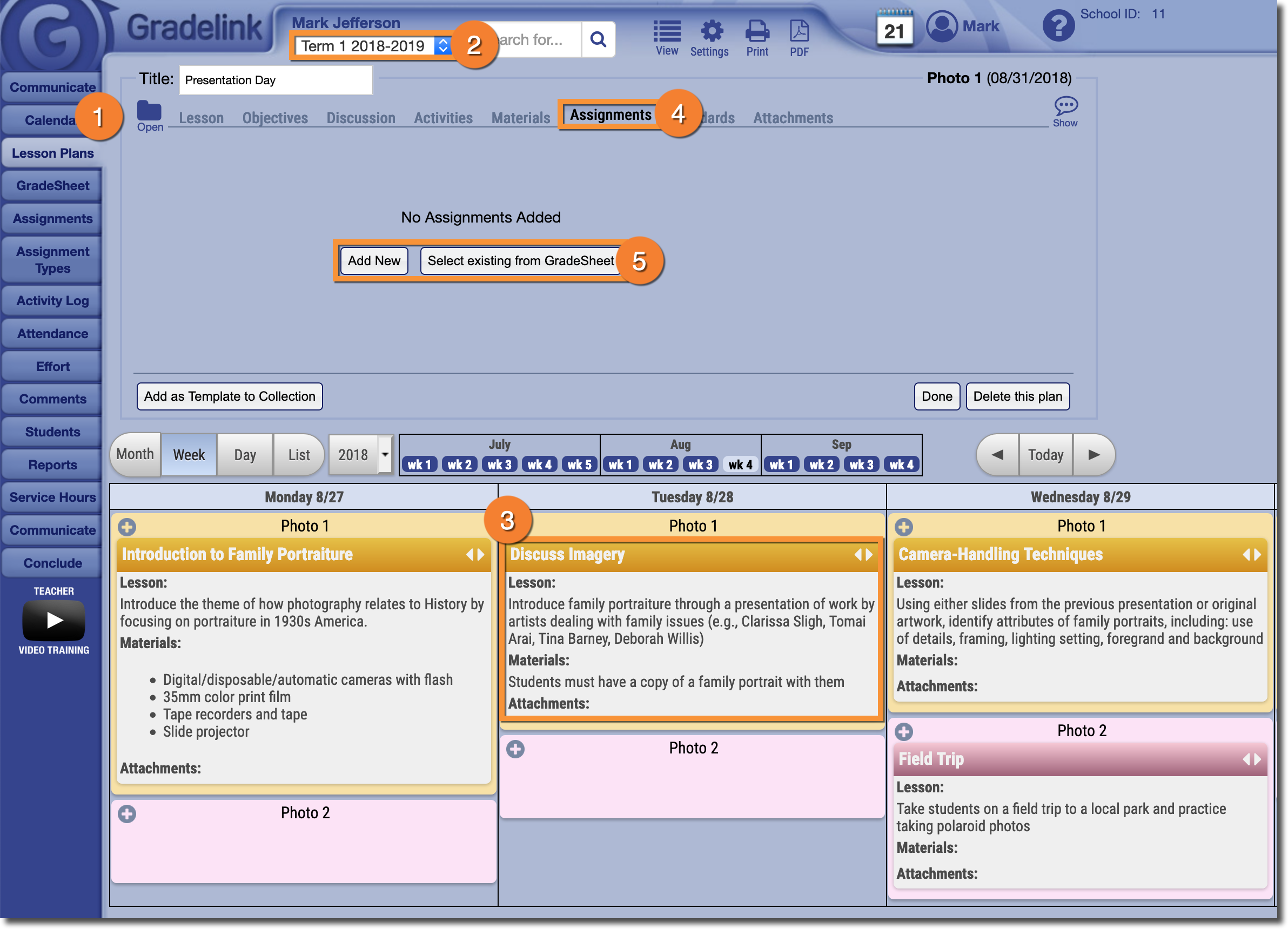 3. Click on the Lesson Plan you would like to add an Assignment to.