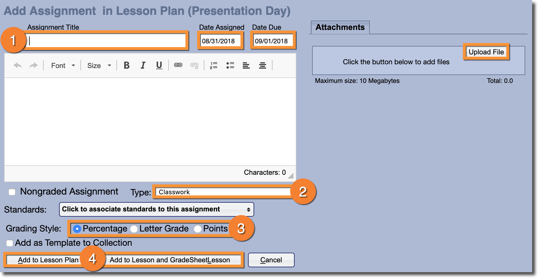 4. Decide whether you'd like to add the Assignment to the Lesson Plan or whether you'd like to add the Assignment to both the Lesson Plan and the Grade Sheet.
