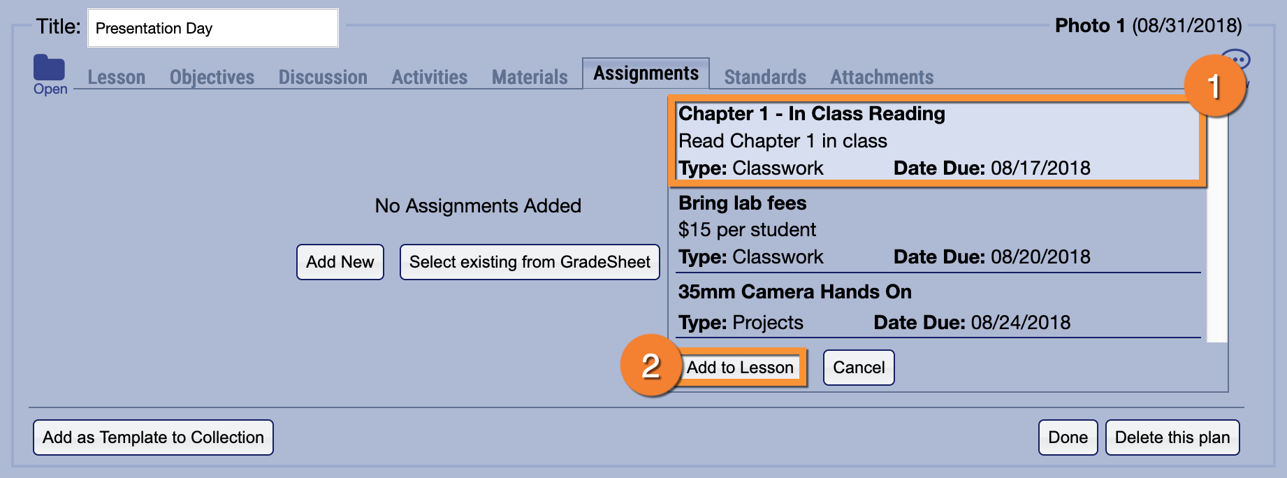 How do I add Assignments to a Lesson Plan?