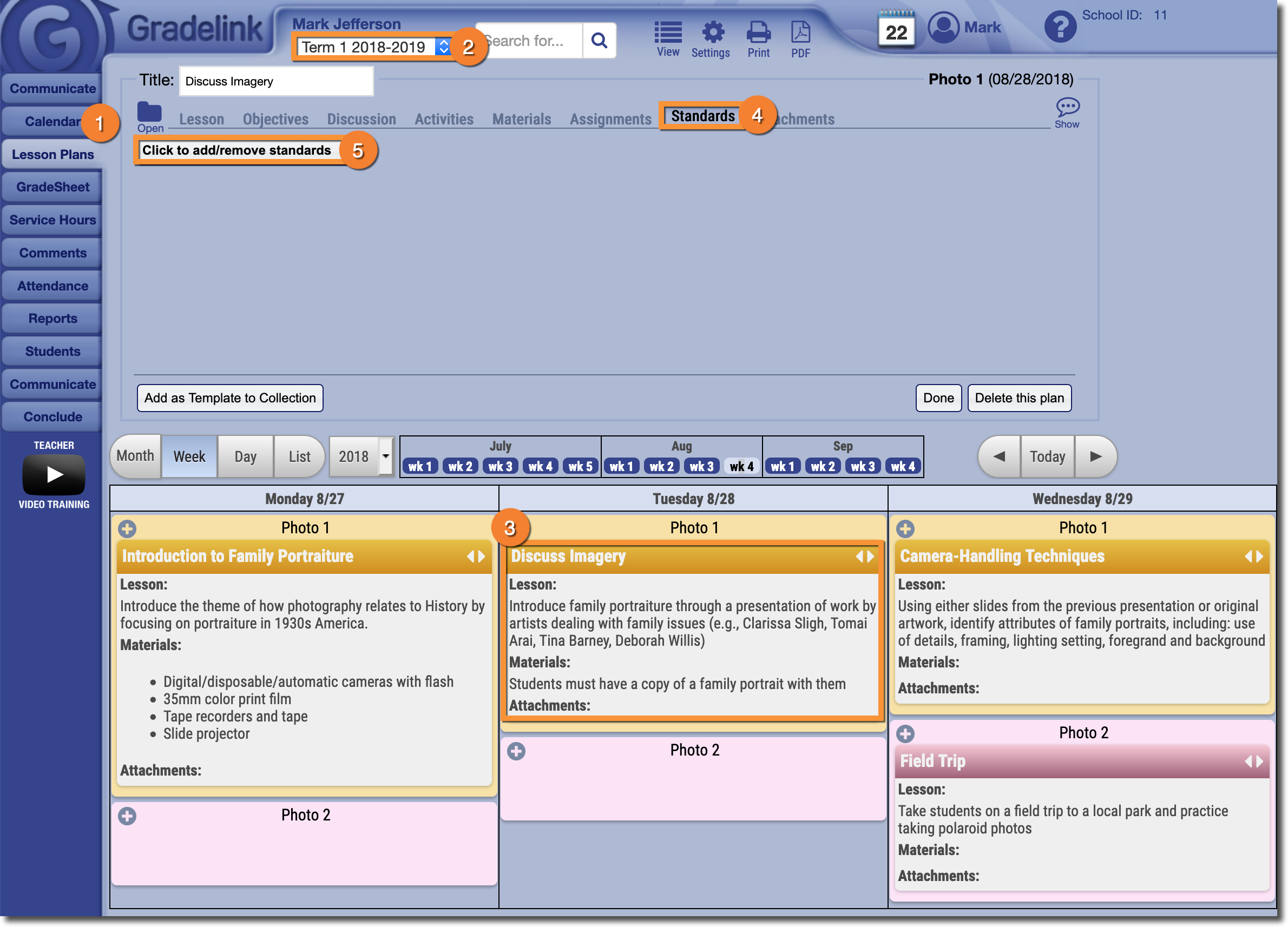 To add Standards to a Lesson Plan: