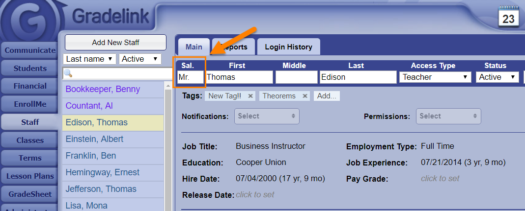 How do I add the salutation on the report card? How do I add the salutation on the report card? Scenario:How do I add the salutation on the report card?Solution:You will need to add the salutation to the staff members profile on the Staff tab.