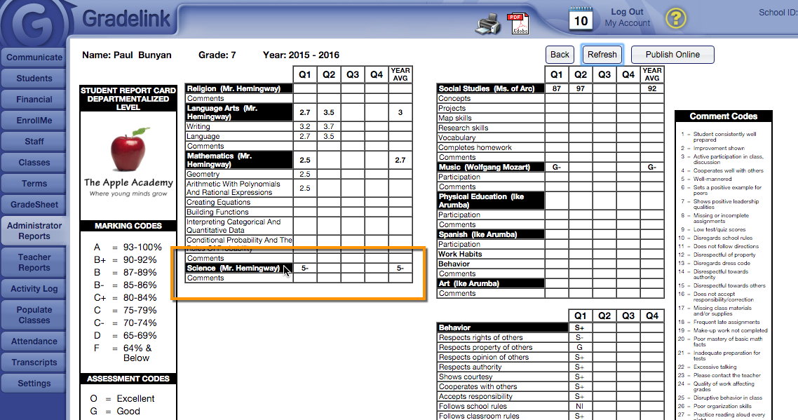 2. There is a super long column on my report card, how do I fix this?