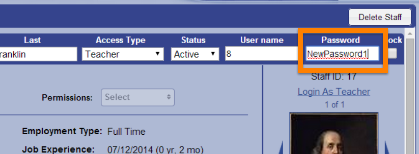 - Select the staff member whose password you would like to change