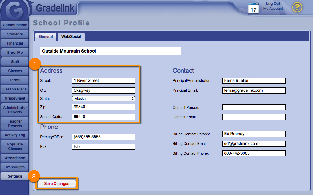 Here, you'll be able to update your school's address. You can also update other information such as the school's contact information. Don't forget to click Save Changes when you're done.