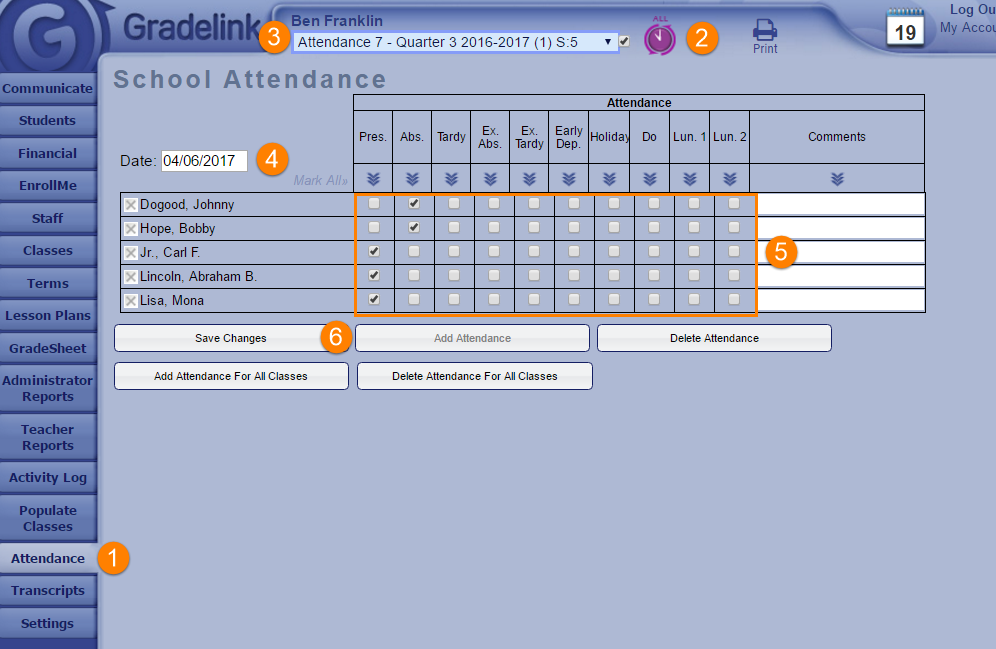 1. Click on the attendance tab.