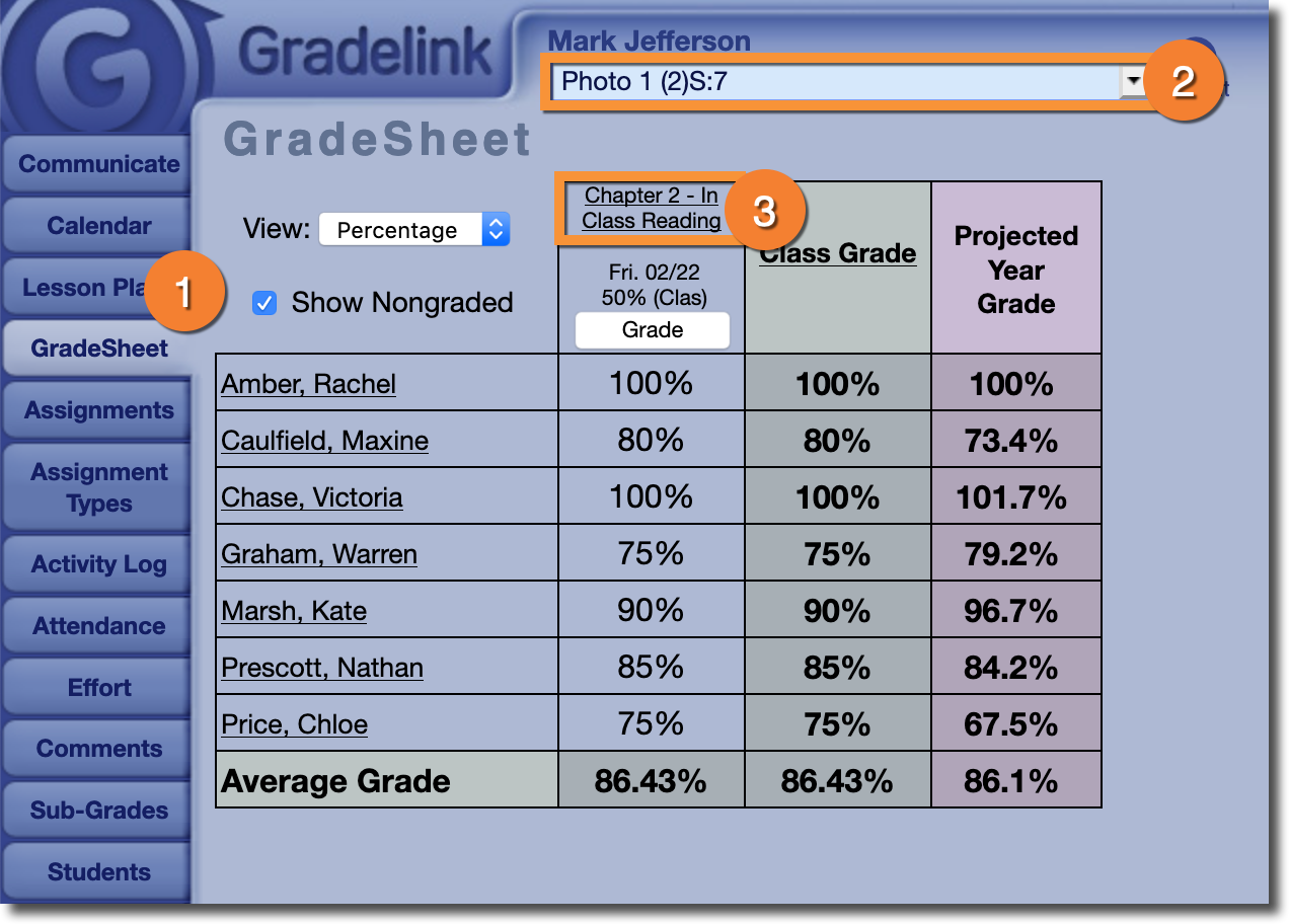 1. Click on the GradeSheet tab.