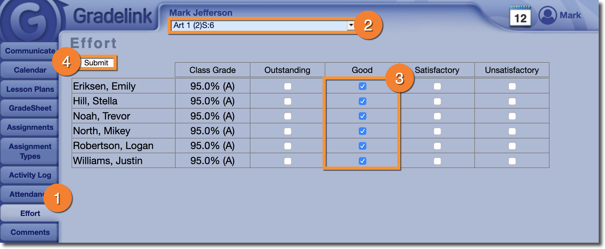 2. Select the class you would like to record effort for using the drop down menu at the top of the page.