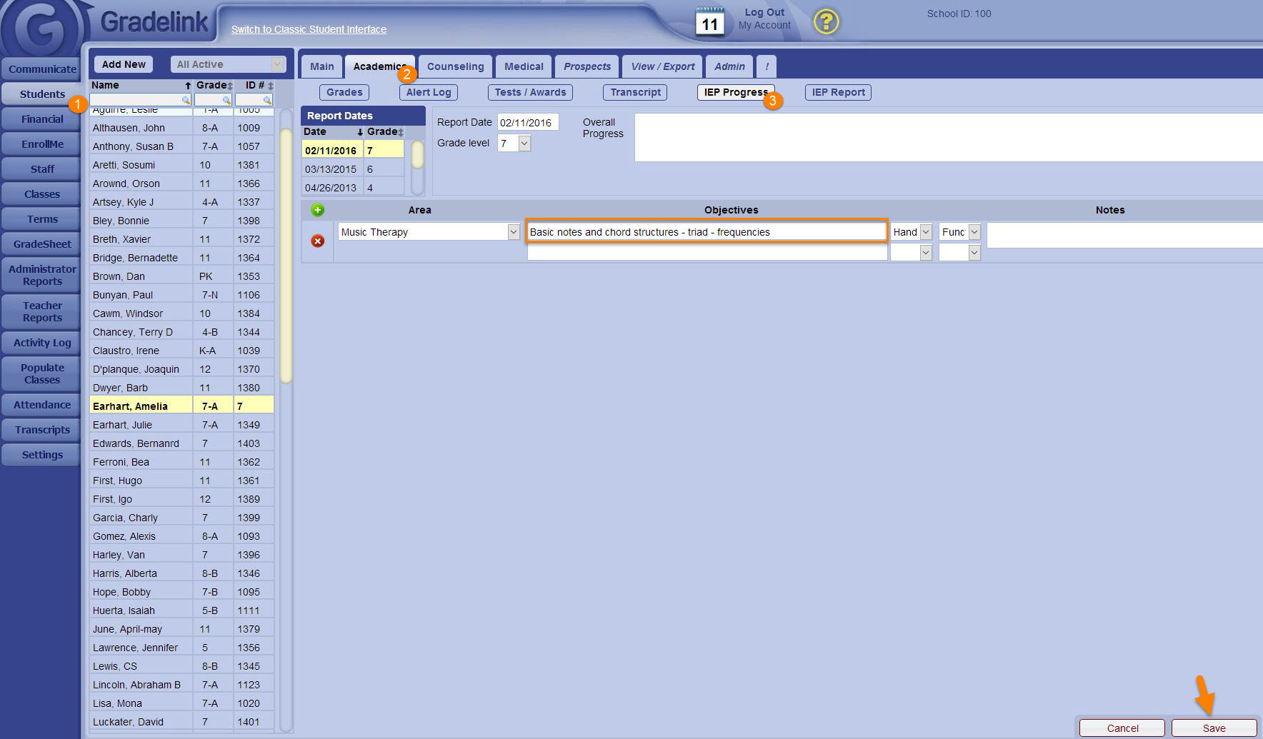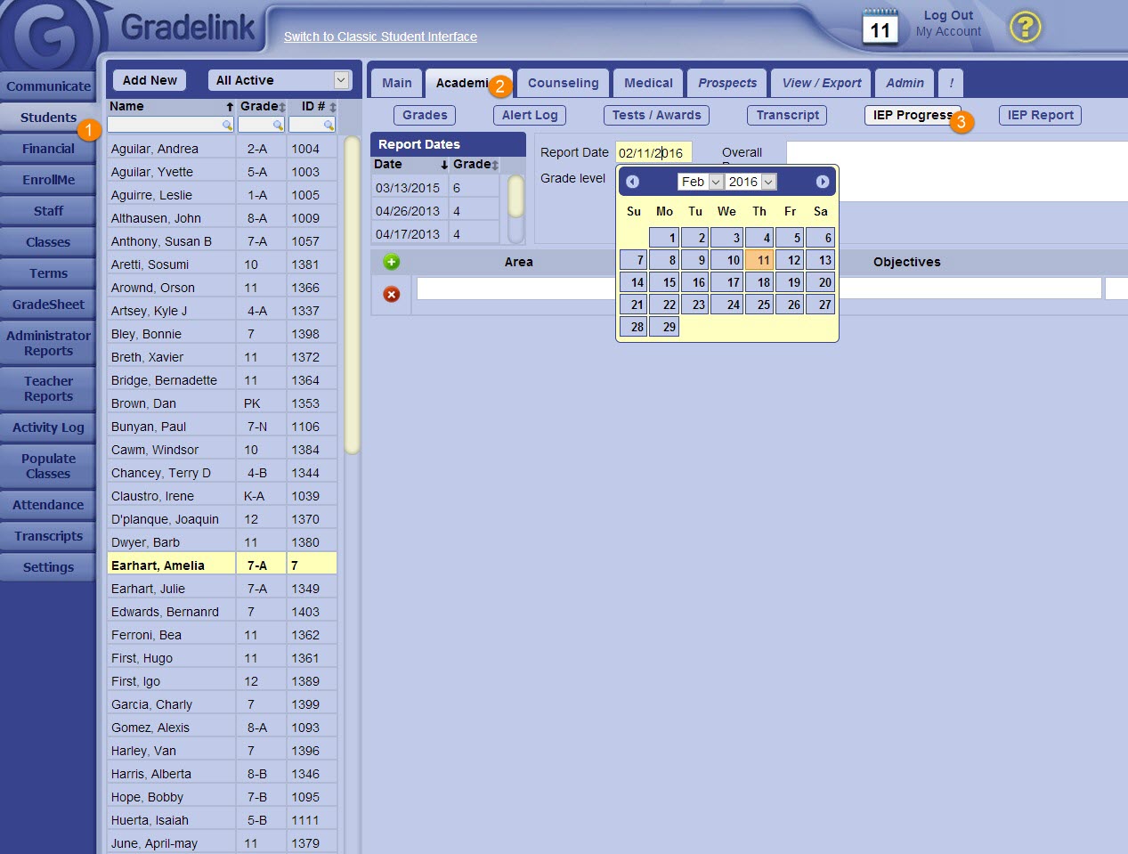 4. Select IEP Progress