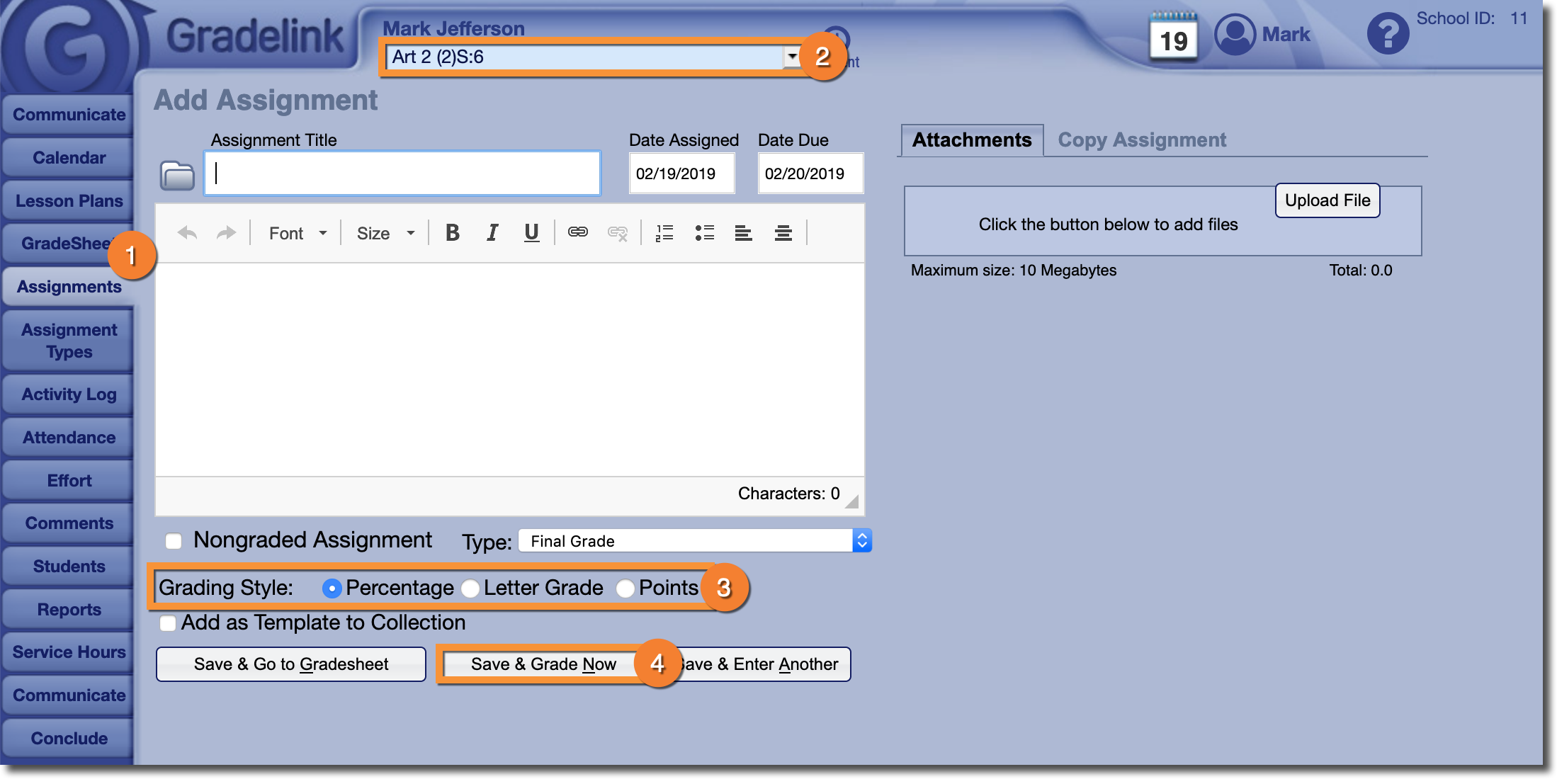 Some schools choose to avoid using Assignments and instead simply enter a single "Final Grade" for each academic term.